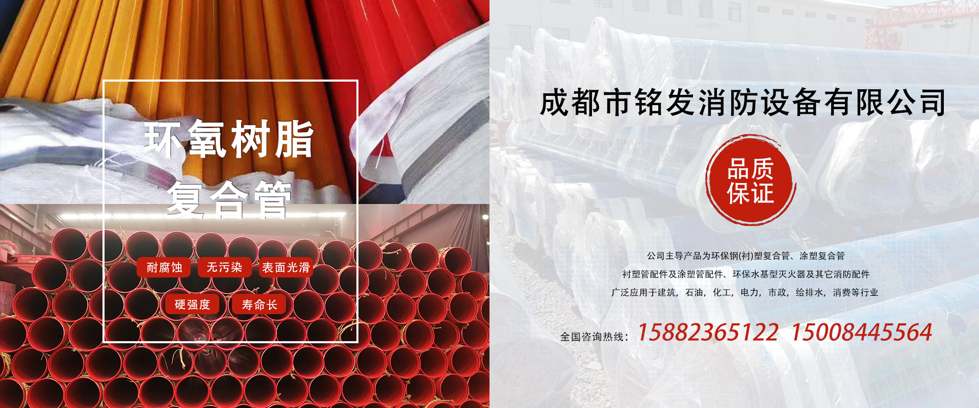 成都市銘發(fā)消防設備有限公司主導產品為環(huán)保鋼(襯)塑復合管、涂塑復合管、襯塑管配件及涂塑管配件、環(huán)保水基型滅火器及其它消防配件。廣泛應用于建筑、石油、化工、電力、市政、給排水、消防等行業(yè)。...